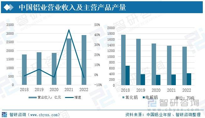 中國(guó)鋁業(yè)集團(tuán)有限公司是中國(guó)鋁行業(yè)中唯一集鋁土礦勘探、開采,氧化鋁、原鋁和鋁加工生產(chǎn)、銷售,技術(shù)研發(fā)為一體的大型鋁生產(chǎn)經(jīng)營(yíng)企業(yè),是中國(guó)最大的氧化鋁、原鋁和鋁加工材生產(chǎn)商,是全球第二大氧化鋁生產(chǎn)商、第三大原鋁生產(chǎn)商。2021年,受鋁價(jià)格上升的影響,中國(guó)鋁業(yè)營(yíng)業(yè)收入實(shí)現(xiàn)大幅增長(zhǎng),2021年?duì)I業(yè)收入為2988億元,較上年同期同比增加60.65%,2022年中國(guó)鋁業(yè)營(yíng)業(yè)收入為2909億元,較上年減少80億元,同比減少2.64%。受鋁價(jià)格上升的影響,近年來中國(guó)鋁業(yè)主營(yíng)產(chǎn)品氧化鋁與電解鋁的產(chǎn)量都呈現(xiàn)出下降的趨勢(shì),2022年氧化鋁的生產(chǎn)產(chǎn)量為1351萬噸,較上年減少30萬噸,電解鋁產(chǎn)量略有增加電解鋁產(chǎn)量為417萬噸,較上年同期同比增加10.03%。