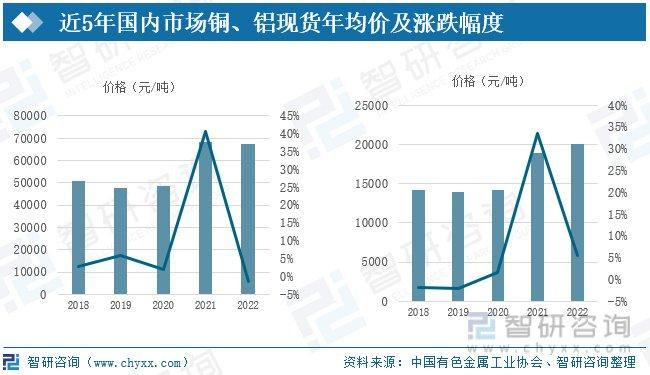 我國(guó)煉銅行業(yè)集中度較高,龍頭企業(yè)之間差距較??;我國(guó)電解鋁行業(yè)集中度低,行業(yè)較為分散,主要是在我國(guó)有色金屬發(fā)展的初期階段,電解鋁產(chǎn)能擴(kuò)張嚴(yán)重,行業(yè)技術(shù)壁壘偏低,行業(yè)中小企業(yè)參與者眾多,從而導(dǎo)致行業(yè)市場(chǎng)集中度分散。2022年,全球有色金屬價(jià)格大浮波動(dòng),上半年,受俄烏沖突、能源危機(jī)、南美供應(yīng)擾動(dòng)等因素的影響,銅價(jià)不斷走高,2022年一季度銅價(jià)創(chuàng)歷史新高,二季度在美聯(lián)儲(chǔ)加息的影響下價(jià)格回調(diào),2022年,我國(guó)銅現(xiàn)貨年均價(jià)為67470元/噸,較上年同比減少1.5%。鋁行業(yè)是國(guó)家重要的基礎(chǔ)產(chǎn)業(yè),氧化鋁和原鋁作為重要的基礎(chǔ)原材料,與機(jī)電、電力、航空航天、造船等行業(yè)密切相關(guān),其產(chǎn)品價(jià)格隨國(guó)內(nèi)外宏觀經(jīng)濟(jì)波動(dòng)呈周期性波動(dòng)。2022年我國(guó)鋁現(xiàn)貨年均價(jià)為20006元/噸,較上年增加5.6%。