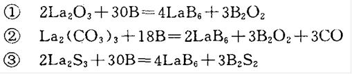 LaB6多晶一般用燒結和熱壓合的方法制備,在要求式樣帶空隙的場合,只能采用燒結的方法來制備。采用LaB6、ZrB2或ZrC坩鍋燒結。為防止B的滲入,不宜用B坩鍋。通常在氫氣氣氛下燒結。熱壓合壓力為400atm,溫度為2000℃,保壓時間為1~2h。坯料尺寸一般為φ100mm×30mm。
