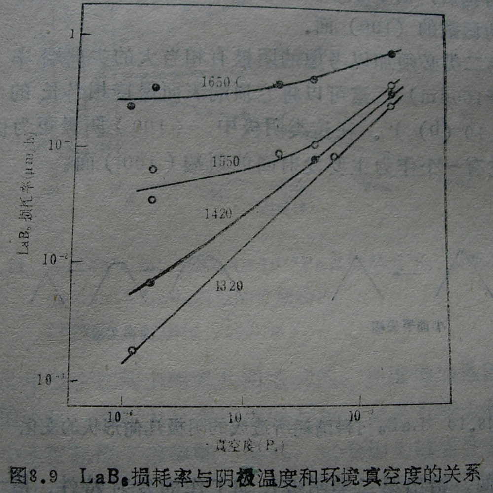 ?。ㄈ勖卣?br /> LaB6陰極的壽命特征,即長期工作的發(fā)射性能主要由LaB6材料的消耗所決定。LaB6的消耗量是由于材料的熱蒸發(fā)所致,隨著溫度的升高和真空度的變壞,消耗量增大。