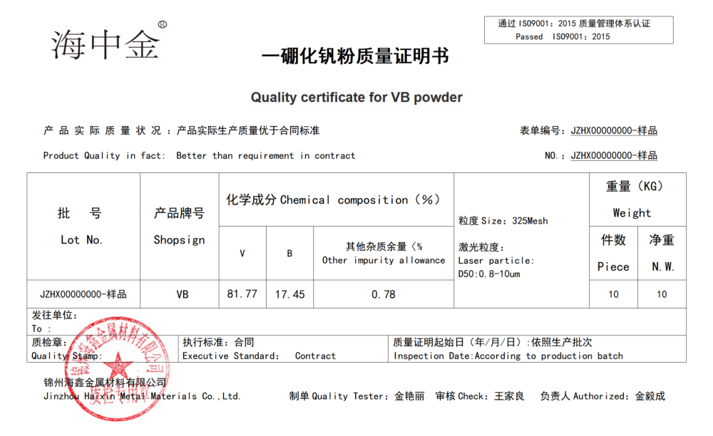 產品性能:VB具有熔點高、硬度大、導電導熱性能好、可抵抗熔融金屬侵蝕等特點。