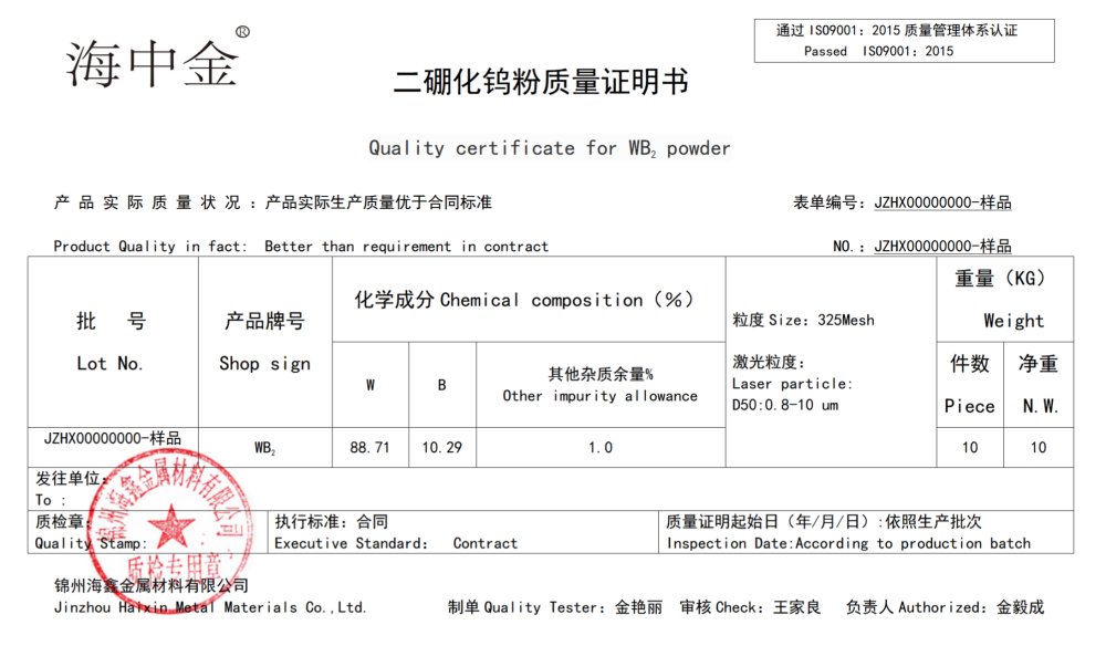 產(chǎn)品名稱:二硼化鎢(WB2)