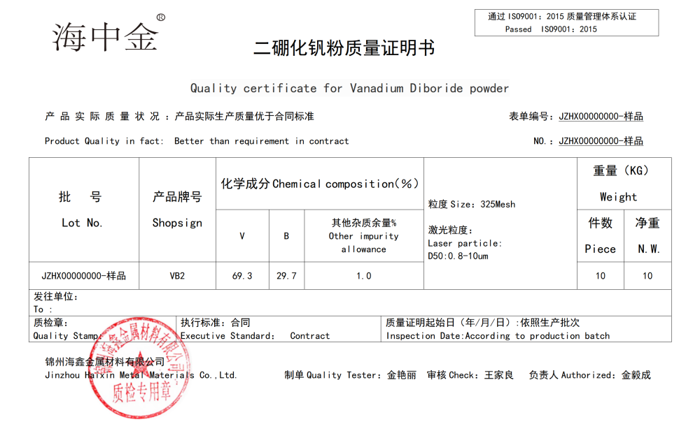 產(chǎn)品性能:VB具有熔點(diǎn)高、硬度大、導(dǎo)電導(dǎo)熱性能好、可抵抗熔融金屬侵蝕等特點(diǎn)。