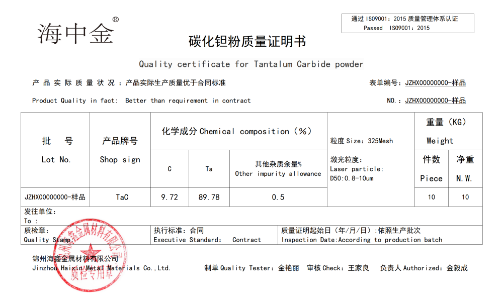 產(chǎn)品名稱:碳化鉭(TaC)