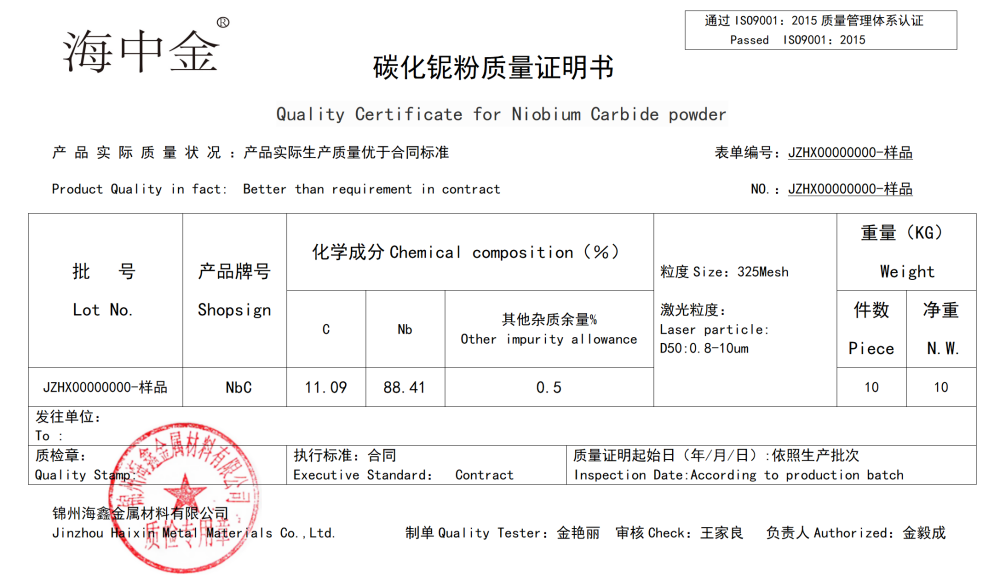 產(chǎn)品名稱:碳化鈮(NbC)